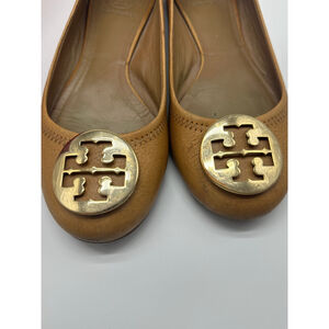 Tory Burch Royal Tan Leather Ballet Flats • Gold Logo Medallion • Size 7