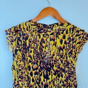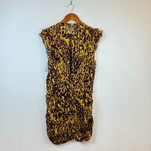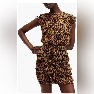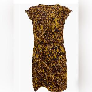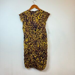 All Saints Hali Pleated Leopard Notes Yellow Multi Mini Dress Size 8 NWT