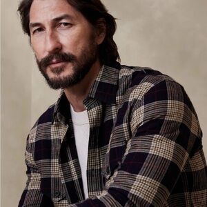 Banana Republic Men's Emiliano Utility Shirt, Navy Plaid Sz Medium - $80