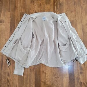 Stay stylish and comfortable with this versatile beige utility jacket. Perfect for layering, it features a classic design that complements any outfit.