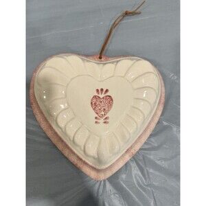 Vintage Hartstone Stoneware Heart Cake Mold Hanging Wall Decor Pink Spongeware