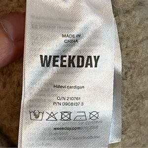 Weekday Hilevi Willow Tan Women's Sweater Cardigan S Balloon Sleeve Oversized