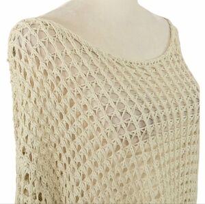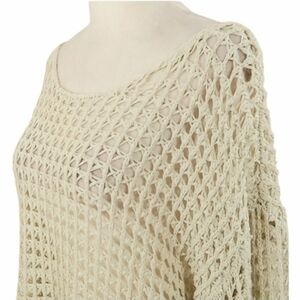 POL Crochet Mesh Knit Top Bell Sleeves Boatneck Lighrweight Oversized Coverup