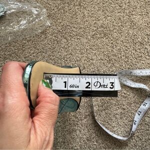 Good American blue clear square toe lucite wedge slip on mule sandals size 7 new