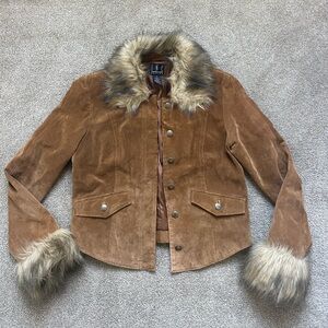 INC Vintage y2k Brown Suede Leather with Faux Fur Cuffs and Collar Jacket