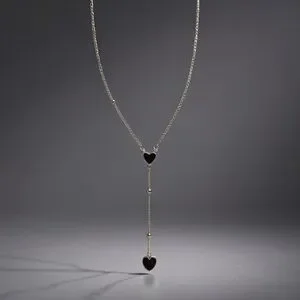 This elegant necklace features a stunning black heart pendant, perfect for adding a touch of sophistication to any outfit. The delicate chain complements the bold black color, making it a versatile accessory for any occasion.