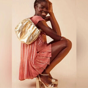 The perfect playful mini, this billowy dress is featured in a shapeless silhouette and sequin-adorned design with a subtle scoop neckline and ruffled bottom hem.