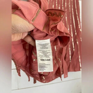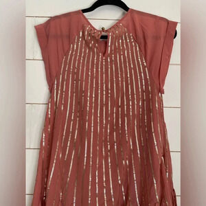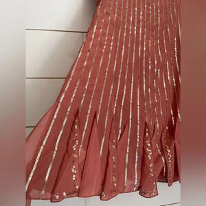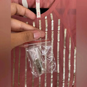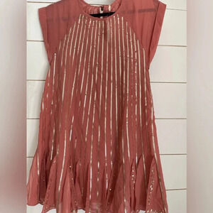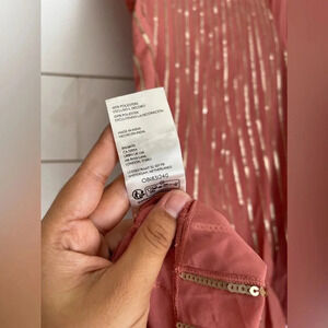 Features: Soft fabrication with a lightweight feel, scoop neckline, sequin detail throughout, rolled sleeve detail, ruffled bottom hem, separate slip lining