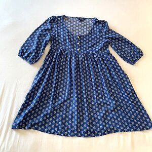 Polo Ralph Lauren Girls Blue Floral Button-Front Dress 3/4 Sleeves Size 12