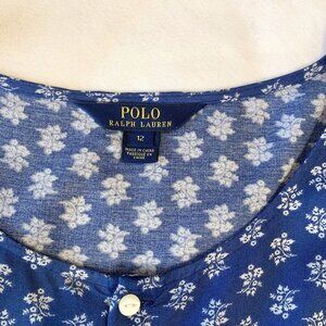 Polo Ralph Lauren Girls Blue Floral Button-Front Dress 3/4 Length Sleeve Round Neck Size 12
