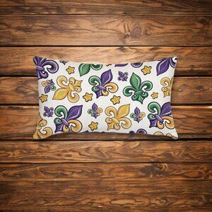 Mardi Gras Pillow Cover Decorative Accent Lumbar Case Fleur De Lis Decor 12x20