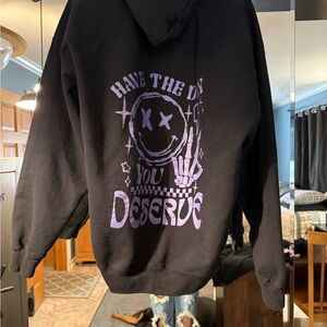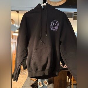 Comfortable black hoodie. Features a white graphic on the chest. Perfect for casual wear. NWOT