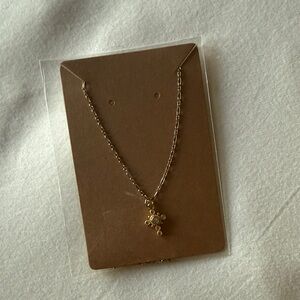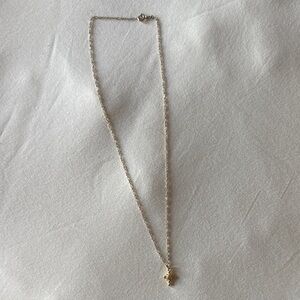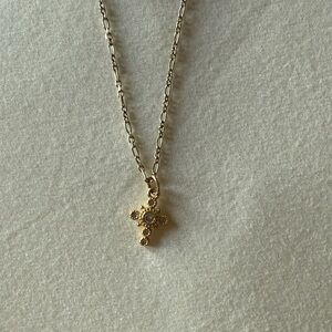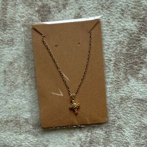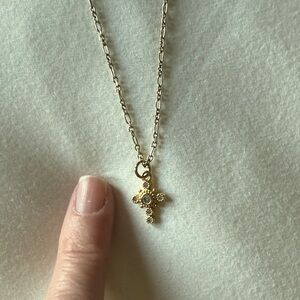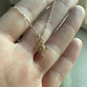 This elegant gold cross pendant necklace adds a touch of sophistication to any outfit. Perfect for any occasion, it features a delicate chain and a beautifully crafted cross pendant.