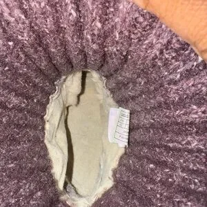 Stylish purple suede boots with cozy knit cuffs. Ideal for cold weather.