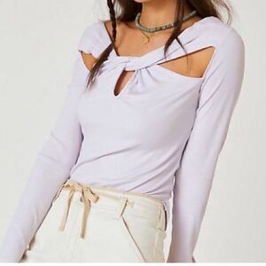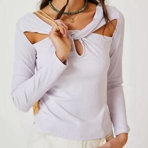 Anthropologie light purple ribbed long sleeve twist front cut out top NWT