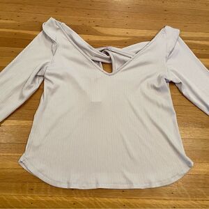 Anthropologie light purple ribbed long sleeve twist front cut out top NWT. 95% polyester, 5% elastane. Armpit to armpit 19 inches. Size large. Brand new with tags.