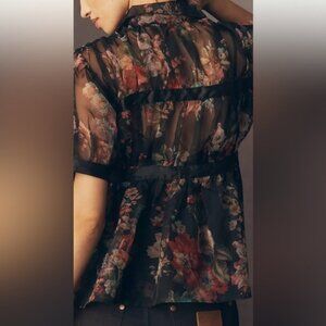 NWT Size L - Anthropologie Short-Sleeve Tie-Front Sheer Blouse (NWT US$ 118)