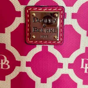 NWOT Authentic Dooney & Bourke Sanibel Richmond shopper in hot pink and white, with sunny yellow interior.