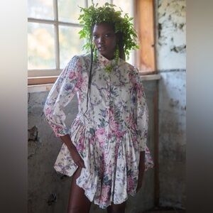 Whimsical ruffle shirt dress in a romantic floral pattern. Classic Selkie piece. Button-down. Can be dressed up or down. I bought this for an event that ended up getting cancelled. Hoping someone else can wear it with love ❤️