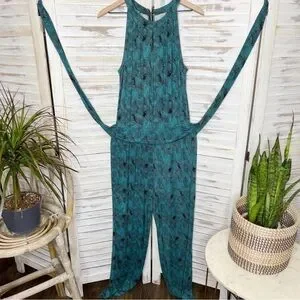 SOFT SURROUNDINGS Sorrento Stretch Jersey Pant Jumpsuit Green Leaves Tropical M