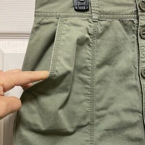 Work, office, casual, errands, putting, momlife,cotton, natural fibres, breathable cool, buttons, pockets, olive, sage, green, khaki, cargo, utility, comfortable, lightweight, basic /staole, spring, summer, fall, winter, knee length, seams, stitching, camping, BBQs, classic, timeless, easy, boho, coastal, cottagecore, hippie, cabin core