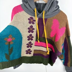 Natural Life Dreamer Hoodie Sweater Colorblock Butterfly Smile Floral L/XL