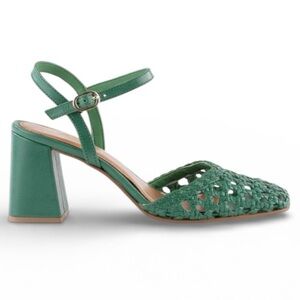 Anthropologie Seychelles Woven Leather Bali Pump Green Size 7.5