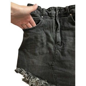 Listicle's Women's Black Denim Skirt. Size small with frayed hem. Please see photos for approximate measurements when laying flat. First photo is for reference to the design and actual skirt being sold is thereafter in the photos.