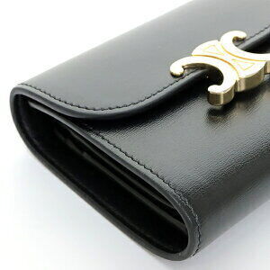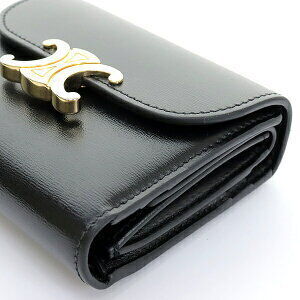 Celine Triomphe Compact Wallet Black Satined Calfskin G