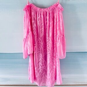 Lilly Pulitzer Nevie Off-The-Shoulder Cover-Up Pink Tropics Size Large
