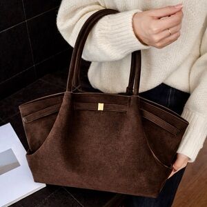 Chocolate Brown with Gold Tone Medium Size Large Capacity Faux Suede Bag