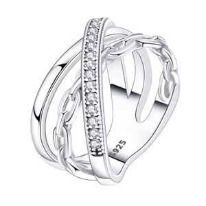 This stunning ring features a unique chain design with sparkling accents. Silver adds a touch of elegance to any outfit.