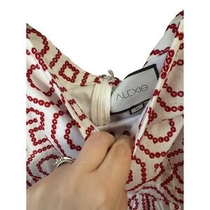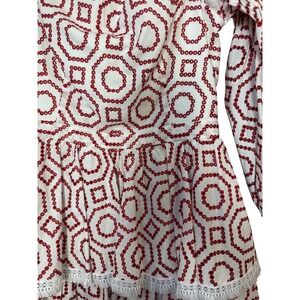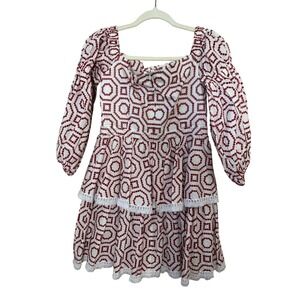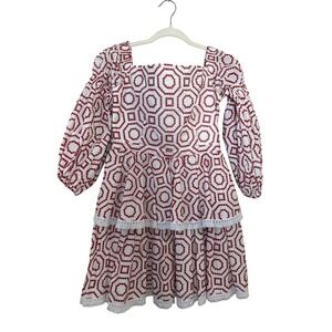 ALEXIS White Red Geometric Embroidered Tiered Square Neck Mini Dress M