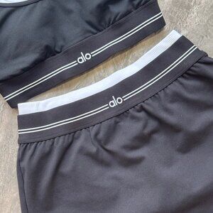 Alo Yoga solid color sports bra with logo + sports skirt, size S