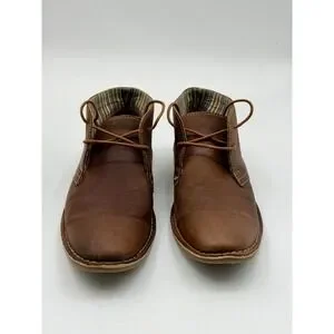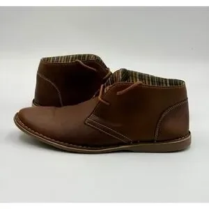 Discover timeless style with these handsome Vito Rossi chukka boots. Crafted from rich brown leather, these boots offer a sophisticated yet relaxed aesthetic, perfect for elevating any casual ensemble. The classic lace-up design ensures a secure and comfortable fit, while the plaid lining adds a subtle touch of personality. Experience the versatility of these boots for a weekend outing or a smart-casual office day.