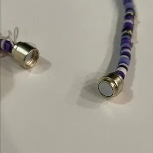 Elegant purple beaded bracelet with silver accents. Perfect for adding a pop of color to any outfit.