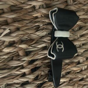 Super cute CHANEL BLACK BOW resin hair clips NEW