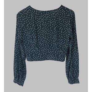 Lulus Polka Dot Long Sleeve Crop Top Womens M Green Long Sleeve St Patricks Day