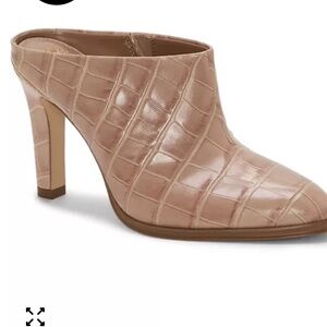 Step out in style with these chic tan croc-embossed mules. Perfect for any occasion, they offer both comfort and elegance.