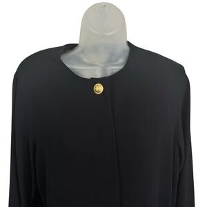 This Rouie Dress is a sophisticated black mini dress, perfect for any occasion. Featuring elegant gold-tone button details on the front closure and cuffs, this dress offers a timeless silhouette. The long sleeves and crew neckline add to its classic appeal, making it a versatile addition to your wardrobe. Crafted from a blend of acetate and polyester, this dress drapes beautifully and is designed for comfort and style. Ideal for both casual outings and more formal events, this black dress is a must-have. Explore this chic outerwear piece and elevate your style.