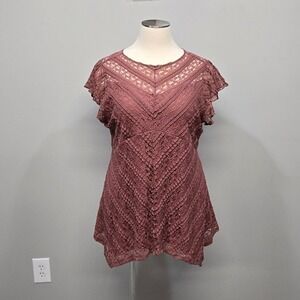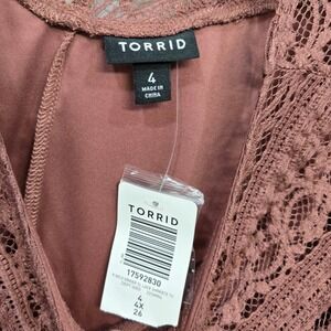 Torrid Babydoll Shirt Top Plus Size 4X Pink Lace Sharkbite Regency Poet Romantic
