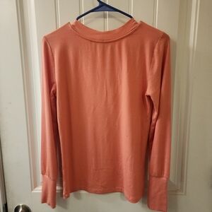 LOFT Ribbed Henley Long Sleeve Top – Coral | Size M | NWT