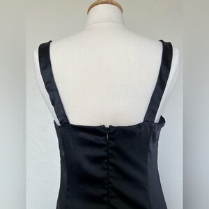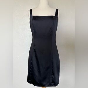 AQUA Black Satin Square Neck Mini Dress