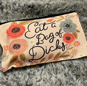 Cursive handwriting cute handbag clutch womens coin purse makeup bag funny eat