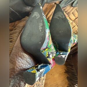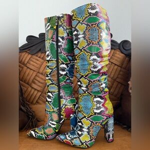 EUYZOU Colorful Slouchy Snakeskin Pattern Pointed-Toe Knee-High Boots Size 36