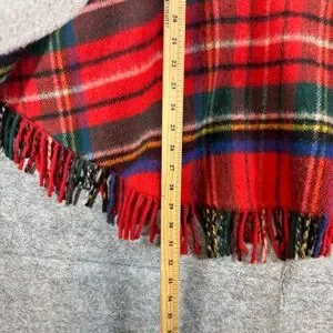 Vintage Edinburgh Woollen Mill Red Plaid Tartan Wool Poncho Cape Hooded Fringe