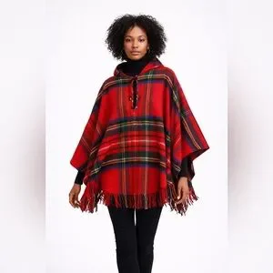 scottish wool poncho, tartan wool cape, red plaid poncho, hooded wool cape, made in scotland wool, fringe poncho cape, heritage wool outerwear, winter layering cape, vintage style poncho, cozy travel wrap, classic tartan cape, boho winter layer