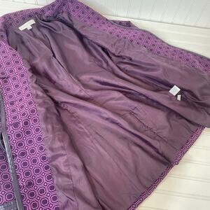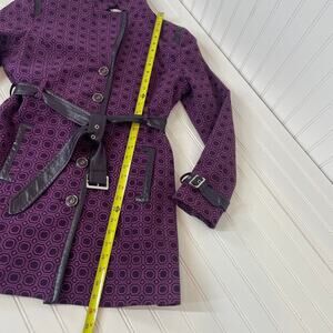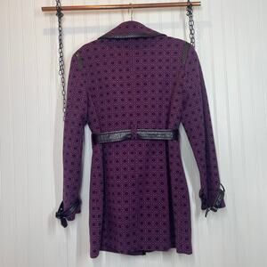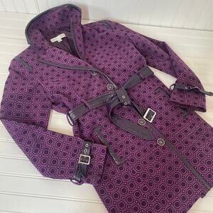 NY & COMPANY Trench Coat Jacket Belted Classic Purple Geo Print Size Medium