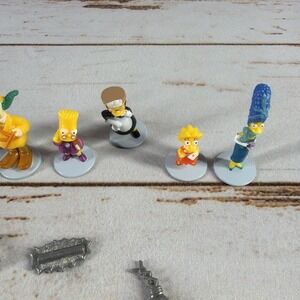 Replacement parts lot for Clue: The Simpsons Edition board game. Includes assorted weapons, figures, and pawns as shown. Pre‑owned and used with normal cosmetic wear. Ideal for completing or restoring your game set. Everything shown in the photos is included.