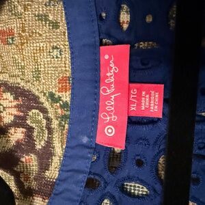 Lilly Pulitzer XL Top - bright blue eyelet top with gold studded neckline - tunic length - 100% cotton fabrication - good condition